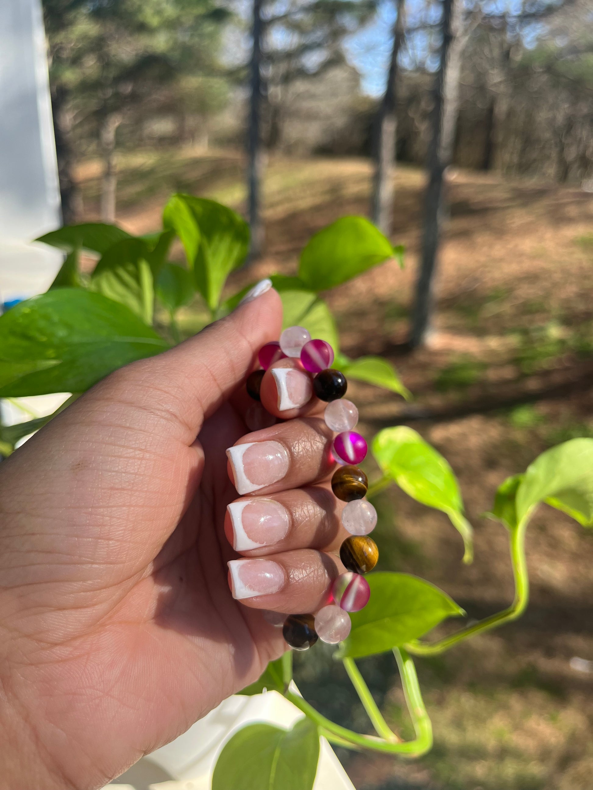 Made with tigers eye, pink aura quartz, and rose quartz.